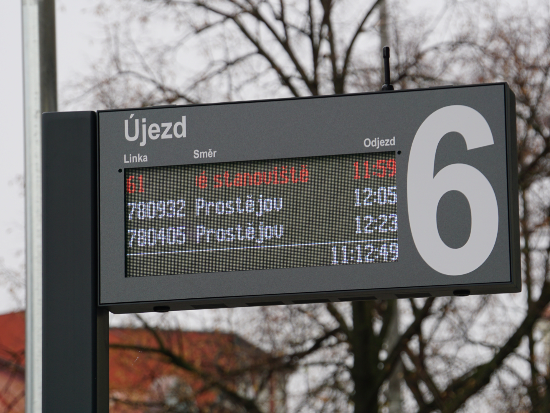 Naše panely nabízejí nejen vynikající čitelnost díky vysoké svítivosti, živé RGB barvy, rozlišení vhodné pro venkovní, ale i moderní vzhled. Informace o odjezdech a směrech jízdy jsou tak snadno dostupné pro všechny cestující.